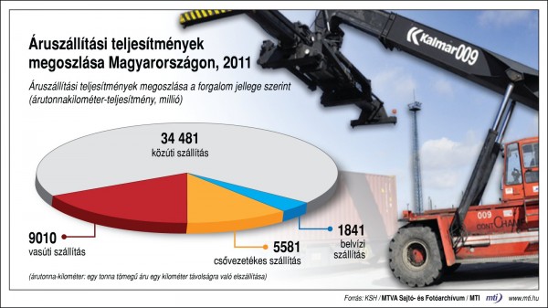 A KSH adatai szerint 2011-ben a szállított áruk tömege – 263 millió tonna – az előző évhez képest 6 százalékkal, a vasúti 2, a csővezetékes szállítás 7 százalékkal növekedett, míg a közúti 8, a belvízi szállítás 28 százalékkal mérséklődött.