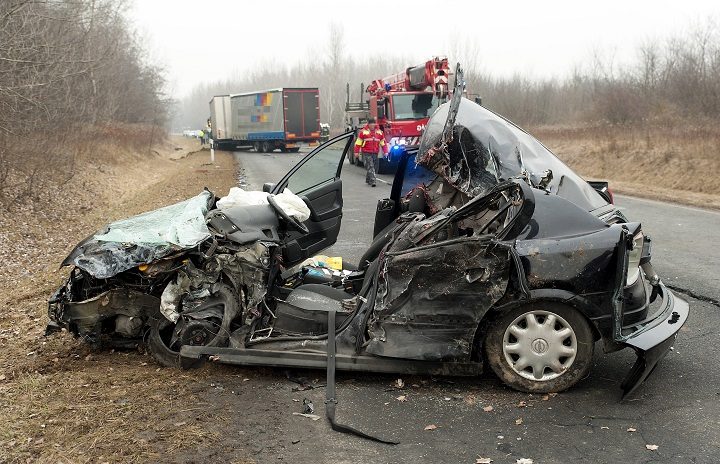 Összeroncsolódott kamion és személyautó a 83-as úton, a koroncói leágazás közelében, ahol a két gépjármű összeütközött 2017. február 9-én. A balesetben a személyautó vezetője meghalt. MTI Fotó: Krizsán Csaba