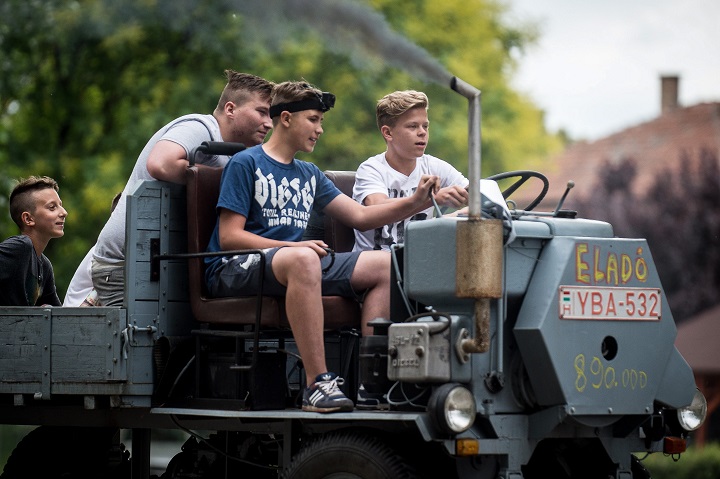 Vancsura Csaba (j) Slavia motorral szerelt csettegőjével a gyorsasági és ügyességi csettegőversenyen a 8. Keceli Meggyfesztiválon 2017. június 10-én. A Dél-Alföldön elterjedtek a csettegők, amelyeket tréfásan mezőgazdasági kabriónak is neveznek. Ezek általában kiszuperált autók alkatrészeiből egyedileg készített szállítójárművek, amelyeket a gyümölcs- és szőlőtermelők használnak a gazdaságukban. MTI Fotó: Ujvári Sándor