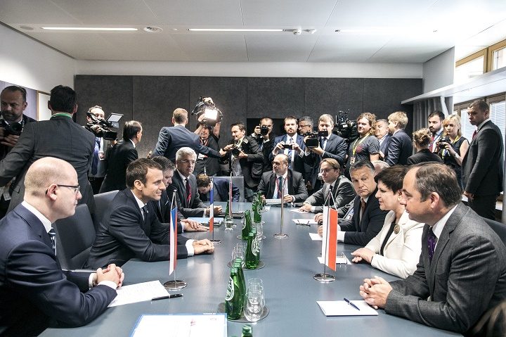 Kiemelt kép: A Miniszterelnöki Sajtóiroda által közreadott képen Orbán Viktor magyar (háttal, b4), Beata Szydlo lengyel (háttal, b3), Bohuslav Sobotka cseh (szemben b2) miniszterelnök, Emmanuel Macron francia államfő (b3) és Robert Fico szlovák kormányfő (szemben j2) megbeszélése az Európai Unió állam- és kormányfőinek kétnapos csúcstalálkozója második napján Brüsszelben 2017. június 23-án. MTI Fotó: Miniszterelnöki Sajtóiroda / Szecsődi Balázs