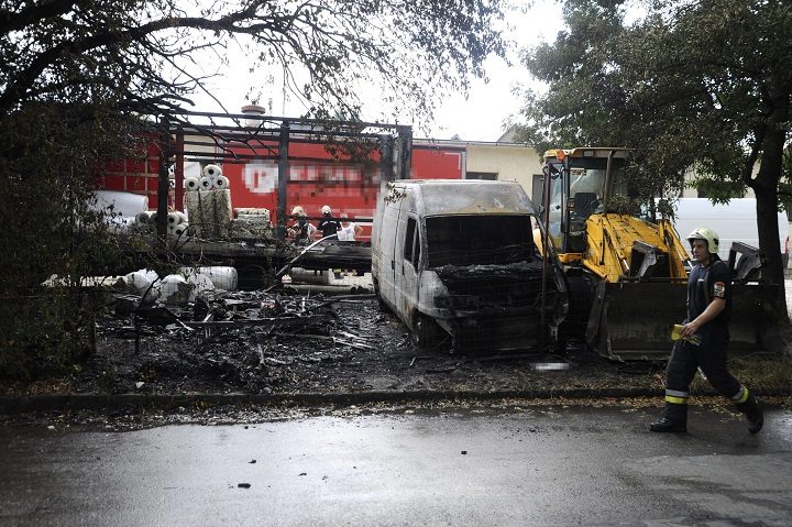 Egy lakókocsi maradványai, mellette kiégett mikrobusz, háttérben egy meggyulladt teherautó a főváros XI. kerületében, a Hadak útján, ahol egy telephelyen több jármű égett 2017. július 9-én. A telephelyen egy őrbódénak használt lakókocsi, mellette egy mikrobusz égett, valamint lángra kapott egy teherautó textilipari műanyagból álló rakománya is. A hő miatt megrongálódott egy munkagép is. MTI Fotó: Mihádák Zoltán