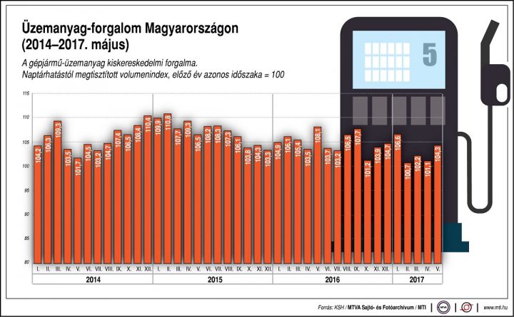 Tovább bővült a benzin és a gázolaj kiskereskedelmi forgalma az idei első fél évben 2016 azonos időszakához képest – mondta Grád Ottó, a Magyar Ásványolaj Szövetség (MÁSZ) főtitkára csütörtökön Budapesten, a szervezet sajtótájékoztatóján. Közölte, hogy 2017 első fél évében a magyarországi töltőállomások csaknem 860 millió liter benzint és majdnem 1500 millió liter gázolajat forgalmaztak, az előbbi 3 százalékos, utóbbi 3,7 százalékos növekedés a tavalyihoz képest.