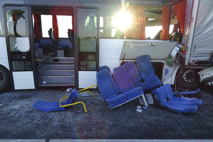 Kiemelt kép: Összeroncsolódott kamion és autóbusz 2017. október 9-én az M5-ös autópályán, Kecskemétnél, ahol két teherautó és egy rendőröket szállító busz ütközött össze. A balesetben ketten meghaltak. MTI Fotó: Donka Ferenc
