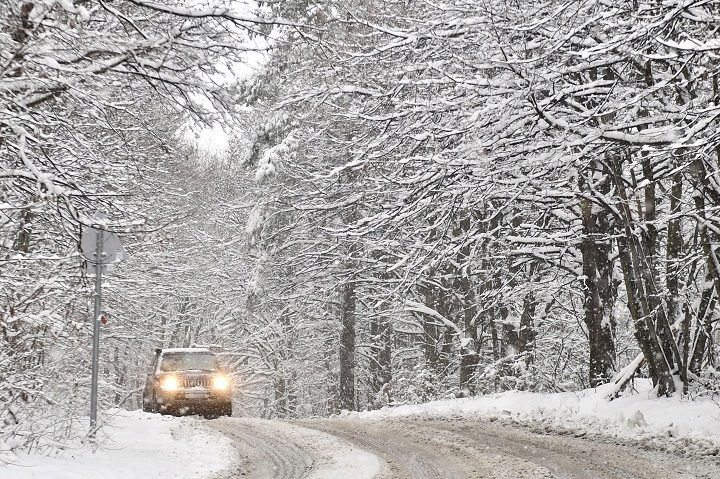 Terepjáró a behavazott úton Pilisszentkereszt közelében 2017. november 30-án. MTI Fotó: Máthé Zoltán