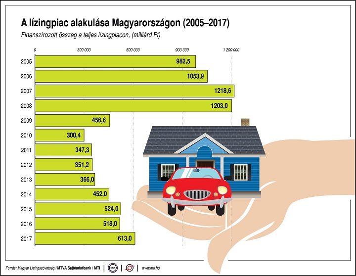 Nyikos Katalin kiemelte: a lízingkihelyezésekben 2016-ban következett be pozitív fordulat, 2017 végén a teljes portfólió 1368 milliárd forintot tett ki. Tóth Zoltán, a lízingszövetség főtitkára kiemelte, hogy tavaly a járműfinanszírozáson belül a személyautóknál és a kisteherautóknál az új lízingkihelyezések összege 27 százalékkal, 184 milliárd forintra nőtt. Kedvező, hogy az eszközfinanszírozás is jelentősen, 334 milliárd forintra nőtt – tette hozzá.