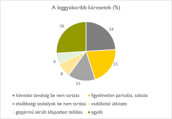 A magánhasználatban lévő személyautók esetében a leggyakoribb káreseteket jellemző módon a sofőrök figyelmetlensége okozza. A CIG Pannónia EMABIT 2017-es adataiból az derült ki, hogy a káreseteket legtöbbször a követési távolság be nem tartása (24%), a figyelmetlen parkolás és tolatás (21%), valamint az elsőbbségi szabályok – például jobbkéz szabály, sávváltás, stop tábla – be nem tartása (15%) okozza. Az előző eseteknél ritkábban fordul elő, de jellemző eset a vadállattal ütközés (8%) vagy a parkolóban hagyott gépjármű sérült állapotban találása (6%) is. Utóbbi leginkább a céges autót használókra jellemző, akik sok esetben ezzel az indokkal próbálják elkerülni az anyagi vagy erkölcsi felelősségre vonást.