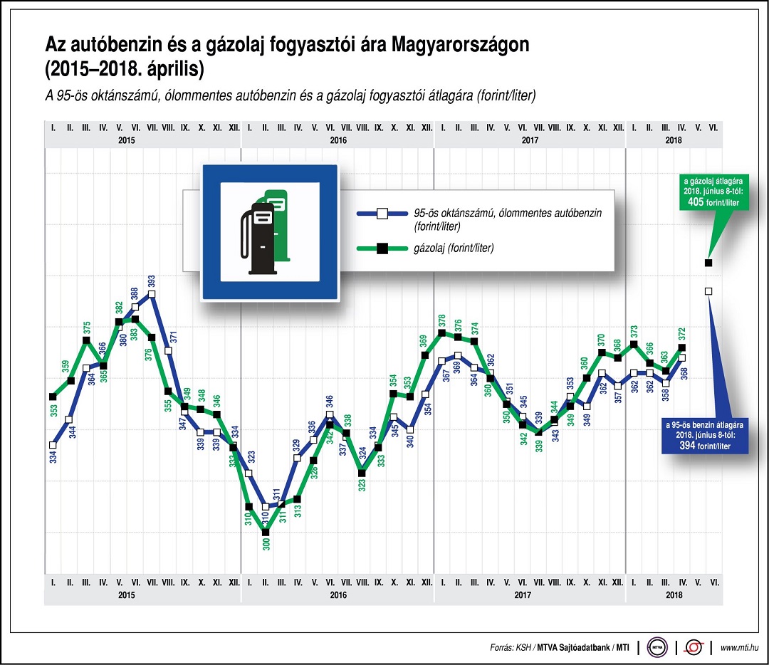 Az autósok 50 forintos különbséget is tapasztalhatnak a töltőállomások árai között. A benzin ára 2012. április elején érte el csúcsát, akkor egy liter átlagosan 451 forintba került. A gázolaj literje 2012. január közepén volt a legdrágább, átlagosan 449 forint.