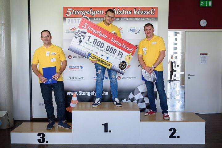 A hatodik ,,5 tengelyen-biztos kézzel!” vezetéstechnikai és közlekedésbiztonsági verseny győztese nem csak ‘Magyarország 2018 legjobb kamionsofőrje’ címével, de nettó 1 Millió forinttal térhet haza a zsámbéki drivingcamp Hungary tanpályájáról.