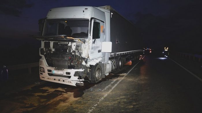 Kistehergépkocsi ütközött össze egy nyerges vontatóval a 4-es főút Szolnokot elkerülő szakaszán csütörtök délután, az autó sofőrje meghalt, utasa megsérült – közölte a Jász-Nagykun-Szolnok Megyei Rendőr-főkapitányság az MTI-vel.