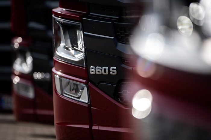 Mi eredetileg 2021 februárjában rendeltünk Scaniákat, ez a megrendelés teljesül idén. Összesen 22 darabot vásároltunk, ebből már megérkezett tizenhárom darab és már csak kilenc járműre várunk, amelyek tavasszal, illetve nyár közepén fognak megérkezni. A típusokat nézve elmondható, hogy 12 darab R460-ast, valamint 10 darab V8-as motorral szerelt nyergest kapunk, amelyek közül hat darab az S660-as, míg négy darab pedig R530-as típustáblát viseli. Érdekesség, hogy az R460-asok már az új Super hajtáslánccal érkeztek hozzánk. Ezek mind a motor, mind a váltó, mind a retarder, mind pedig a hátsó híd terén teljesen új technikával vannak ellátva. A V8-as motorokkal szerelt nyergesek esetén azért döntöttünk kétféle motorteljesítmény mellett, mert azok a gépkocsivezetők, akik majd ezeket a járműveket kapják, azok általában nehéz rakományokkal dolgoznak és rendszeresen közlekednek nagyobb leterheltség mellett. Szeretnénk látni, melyik motorral lehet hatékonyabban teljesíteni ezeket a fuvarfeladatokat.