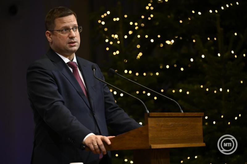 Budapest, 2025. december 23. Gulyás Gergely, a Miniszterelnökséget vezető miniszter a Kormányinfó sajtótájékoztatón a Karmelita kolostorban 2025. december 23-án. MTI/Hegedüs Róbert